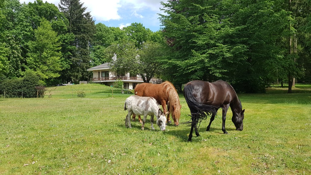 Les chiens et les chats sont bienvenus si ok chats et chevaux. Attention le terrain n’est pas clos 🙂 .