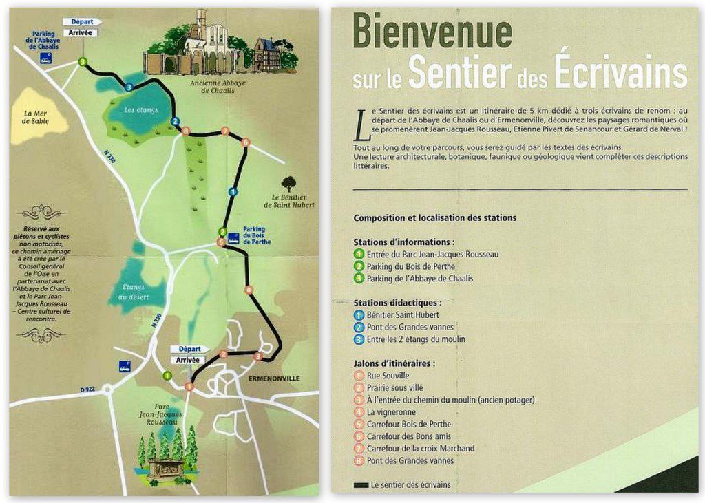 Nous nous situons sur le Sentier des Ecrivains, reliant le parc Jean-Jacques Rousseau à l‘Abbaye de Chaalis, en passant par le château d’Ermenonville.
